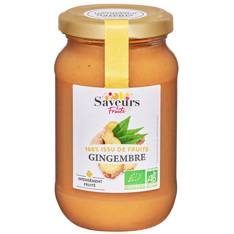 La saveur légèrement piquante du Gingembre donnera du peps à vos plats ou vos pâtisseries, en fond de tarte par exemple ! Pour les plus aventureux, à tester sur une tartine de pain le matin, pour booster votre matinée ! Nous avons associé cette préparation 100% issue de fruits à de la pomme, pour permettre d'adoucir le côté relevé du gingembre.